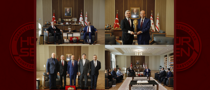 Hür Sen Konfederasyonu olarak, Kuzey Kıbrıs Türk Cumhuriyeti Cumhurbaşkanı Sayın Ersin TATAR’ı makamında ziyaret ettik. Ziyaret’e Genel Başkan Levent Kuruoğlu, Genel Sekreter Ziya Gürol TOKER Yönetim Kurulu Üyeleri Ali İhsan HASANPAŞAOĞLU ve Mustafa MORKOYUN katıldı. Ziyaret kapsamında Kıbrıs meselesinin tarihsel arka planı, güncel gelişmeleri ve milli davamızın geleceği üzerine istişarelerde bulunduk. Sayın Cumhurbaşkanı’nın nazik ev sahipliği ve misafirperverliğinden dolayı teşekkür ederiz. Kıbrıs Türk halkının onurlu mücadelesine desteğimizi kararlılıkla sürdüreceğiz.